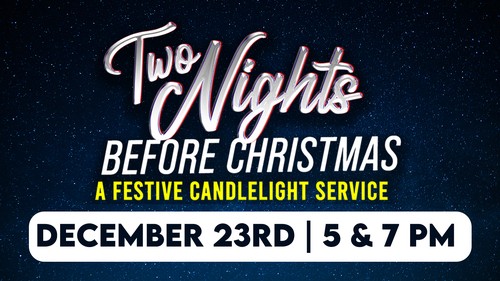 Gather 'round for a heartwarming Christmas celebration! Join us for Two Nights Before Christmas, our festive Christmas service filled with joyous worship and the warm glow of candlelight. Let’s come together as a community to embrace the true reason for this beautiful season, Jesus Christ! Mark your calendars for Tuesday, December 23rd, with services at 5:00 PM and 7:00 PM. After each service, we have our after-party at the park, where you can stay and enjoy sweet and savory treats, beautiful Christmas lights, and photo opportunities at our Christmas photo booths. Bring your loved ones, invite friends and neighbors, and join us for a night filled with joy, wonder, and celebration as we honor the Prince of Peace and King of Kings.