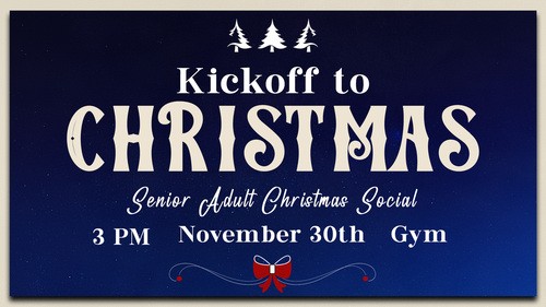 The Seasoned Adult Living Triumphantly (SALT) Ministry Leadership Team is excited to invite you to this year’s Christmas Social, “Kickoff to Christmas,” which will take place on Sunday, November 30th from 3 PM to 5 PM in the Gym. This is the first event of this year’s “Christmas at the Park.” We're looking forward to a great time of Fun, Food, Fellowship, and Christmas Music.
